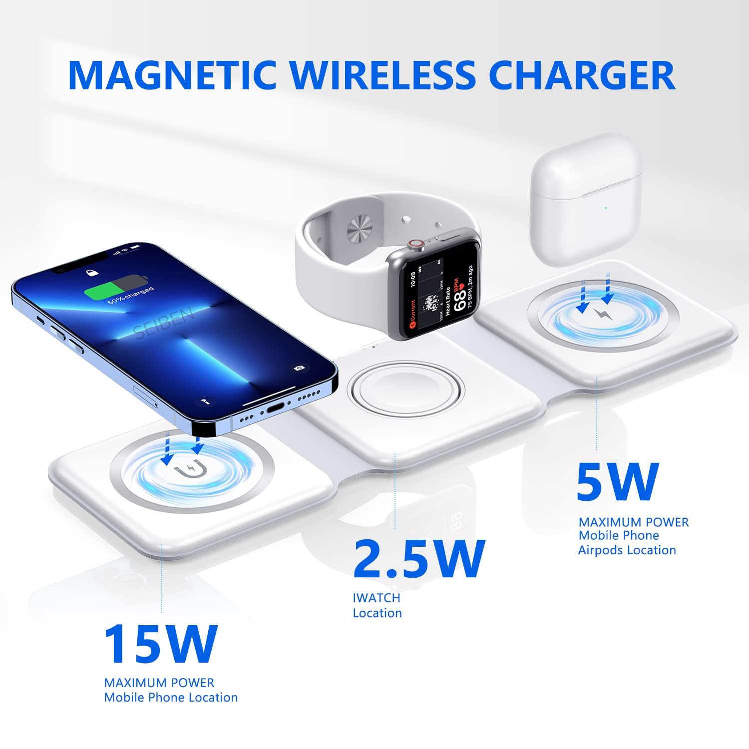 ✅ 3-in-1 Charging – Charge Phone + Smartwatch + Earbuds together.