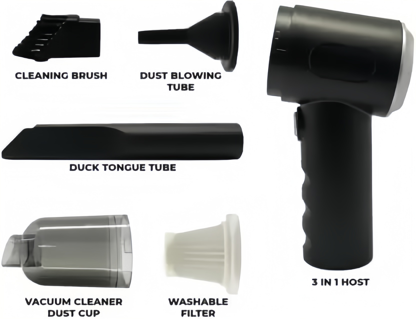 π 3-in-1 Functionality β Works as an air duster, mini vacuum, and blower.