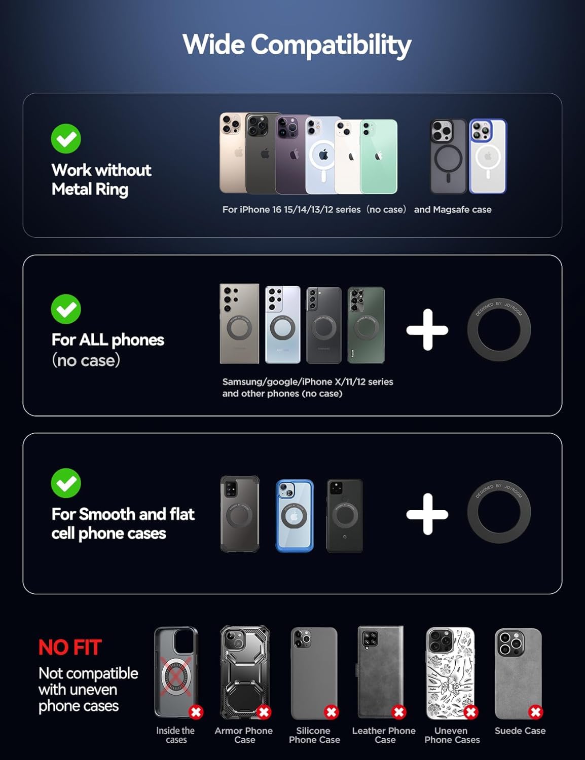 π Vacuum Suction Technology β Advanced suction base ensures a firm, non-slip grip on any flat surface (car, desk, or wall).